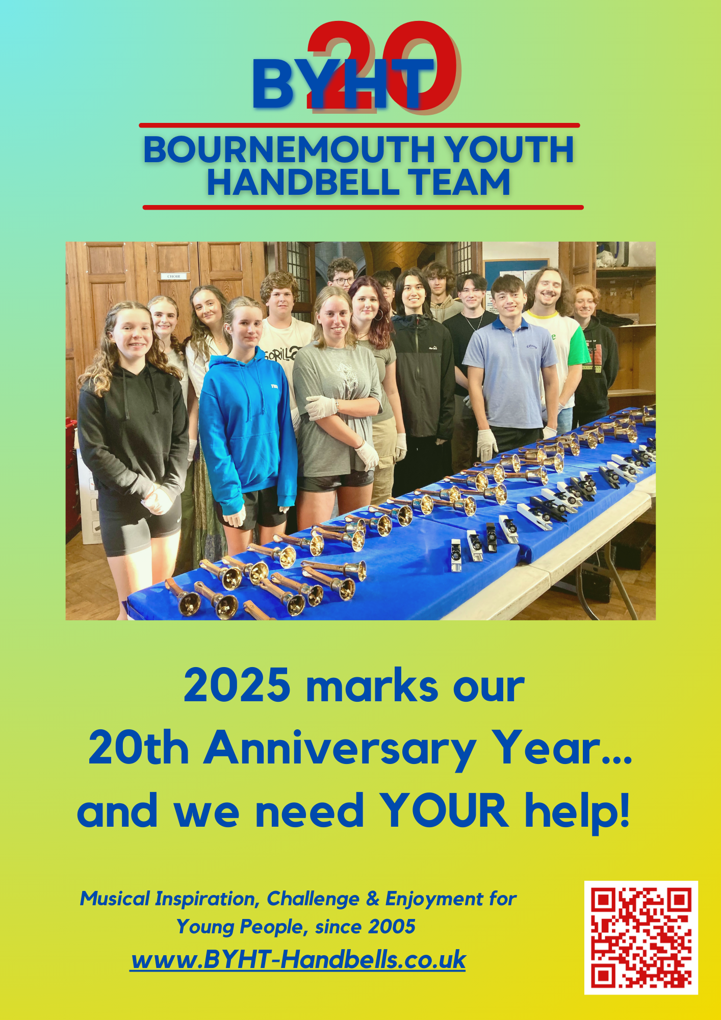 In 2025, we will be celebrating our 20th Anniversary. We’re planning an Anniversary Concert Tour, to involve the current team as well as some of our BYHT Alumni; young and not-so-young people now, who have benefitted from this unique musical experience over the last twenty years.